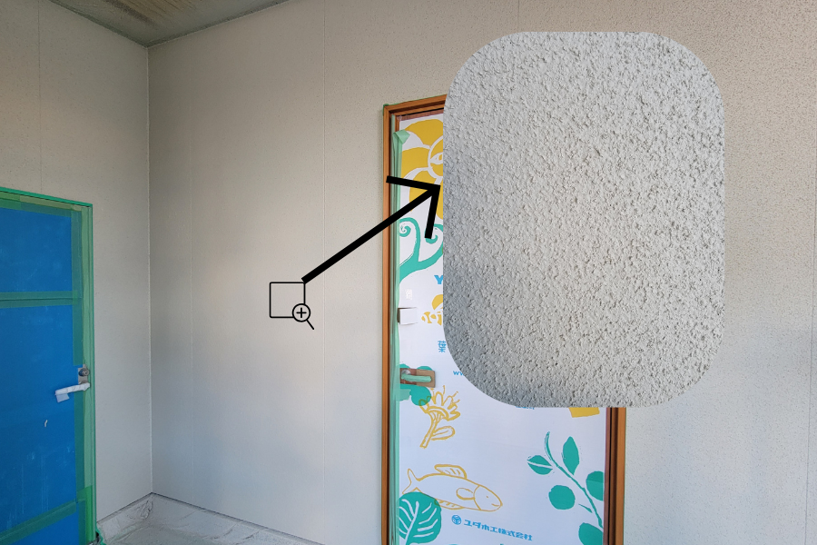 1階の半分に「弾性リシン」という外壁材も使用しています。