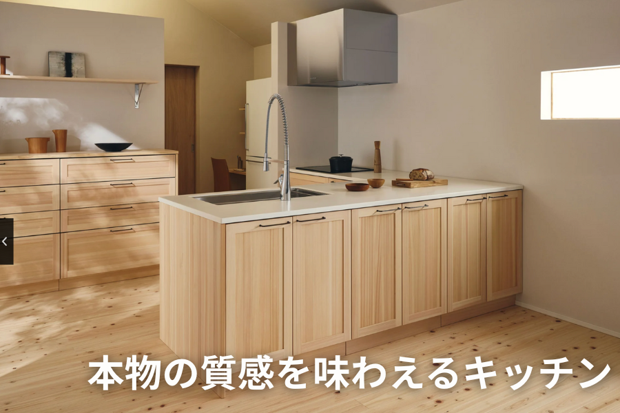 面材に木を使ったキッチンはたくさんありますが、「面材をすべて無垢の木で作っている」のはウッドワンだけ。