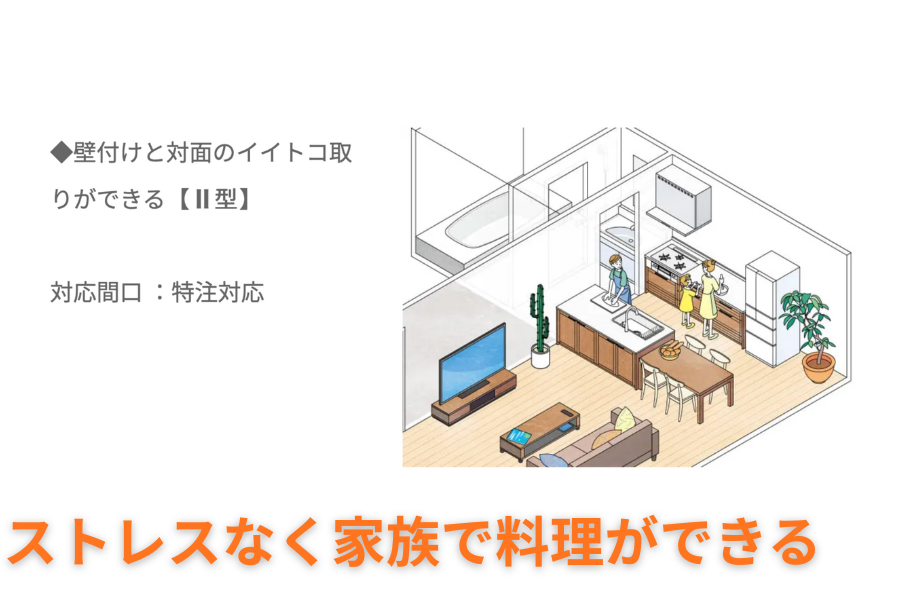 最近はアイランドキッチンがとても人気ですが、あえて Ⅱ型(ニ型) を選びました。