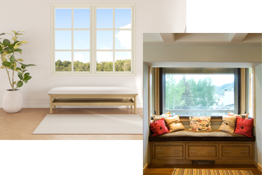 我が家のLDKの象徴でもあるのが、テレビボードからつながる 造作の窓ベンチ。