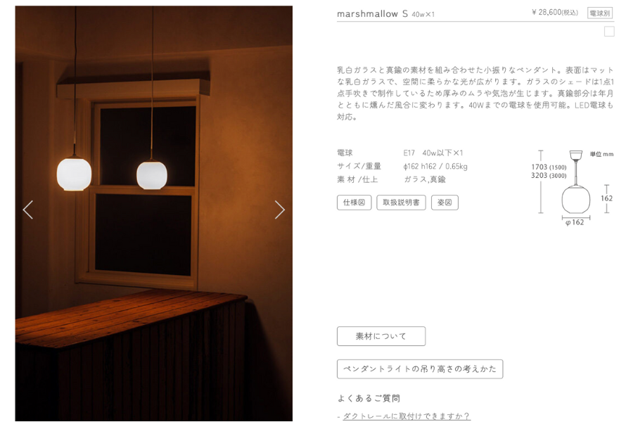flameのペンダントライト「marshmallow」を2灯 取り付けて、光のリズムも心地よく。