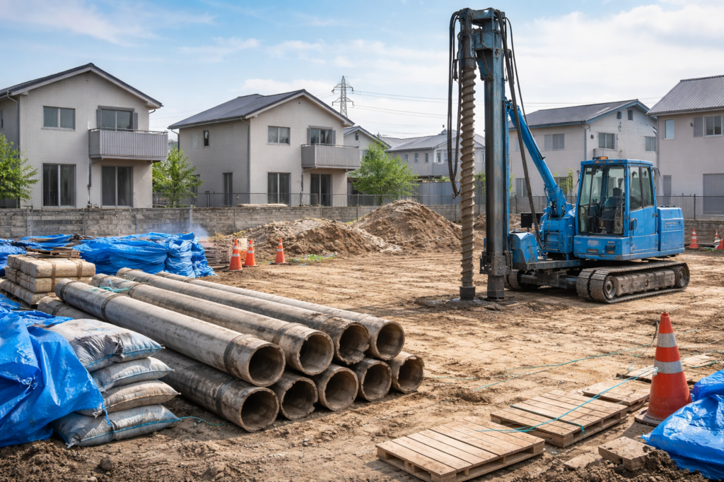 表層改良よりは費用がかかりますが、鋼管杭よりはコストを抑えやすい工法です。