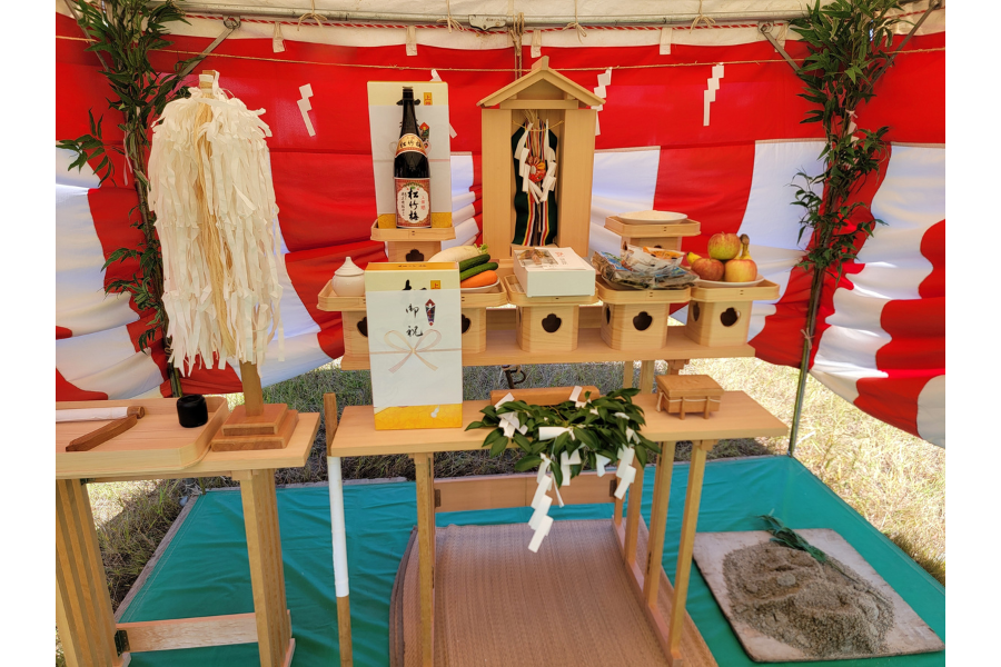 地鎮祭(じちんさい)は、土木工事や建築工事の着工前に行われる、工事の安全と建物の永続的な繁栄を祈願する神事です。
